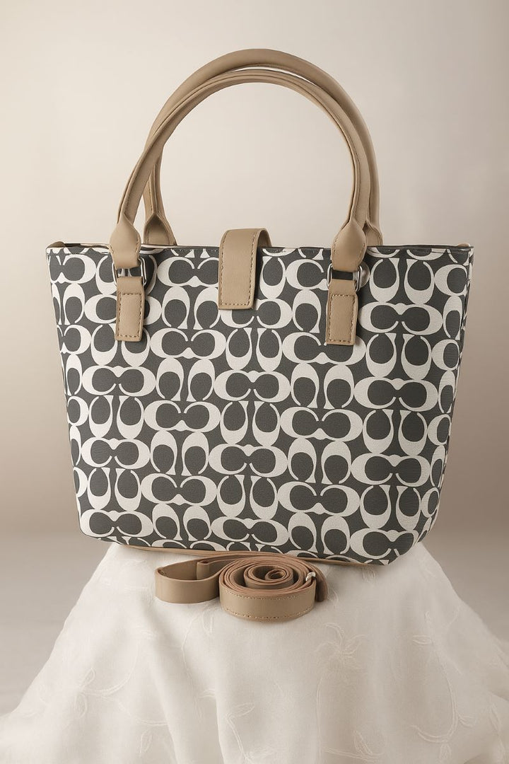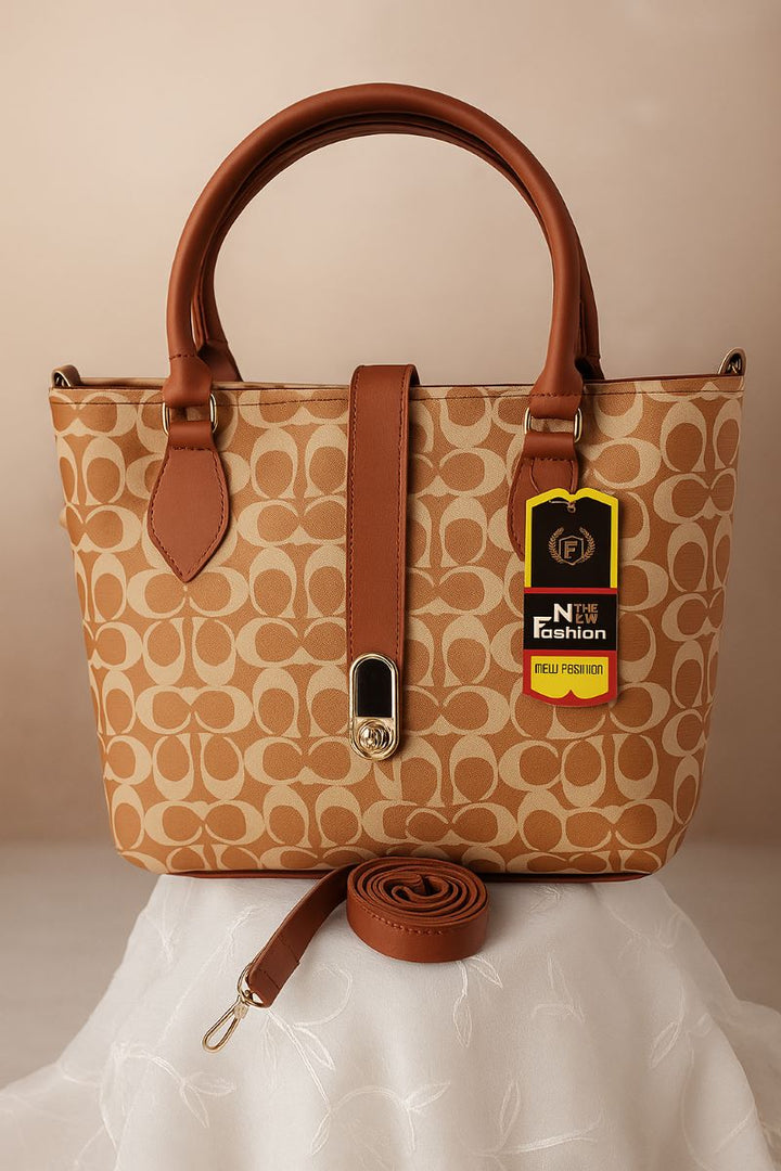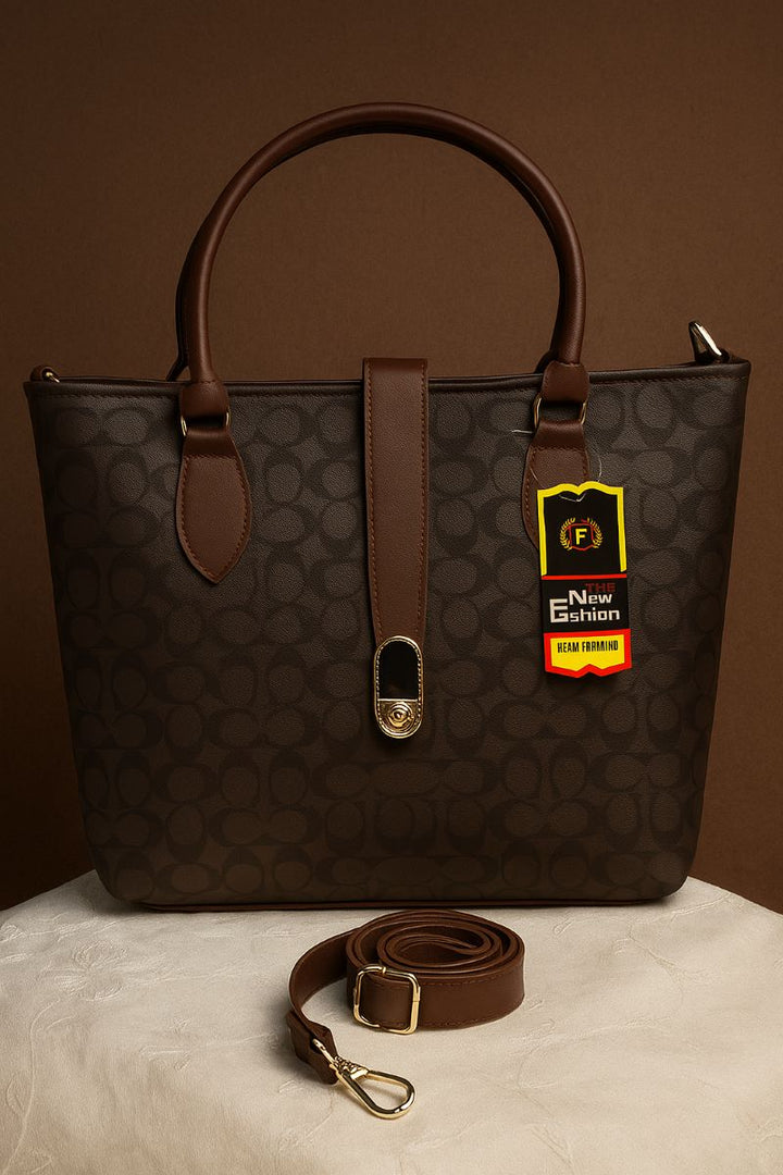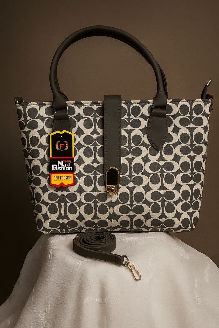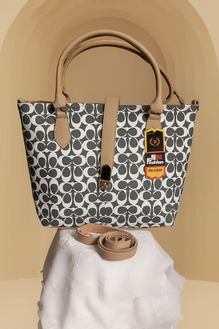 This handbag exudes effortless sophistication with its classic patterned design and refined finish. Perfectly balancing elegance and practicality, it features smooth handles, a chic buckle accent, and a structured silhouette that adds a touch of grace to every outfit. A statement of timeless charm for the modern woman.
